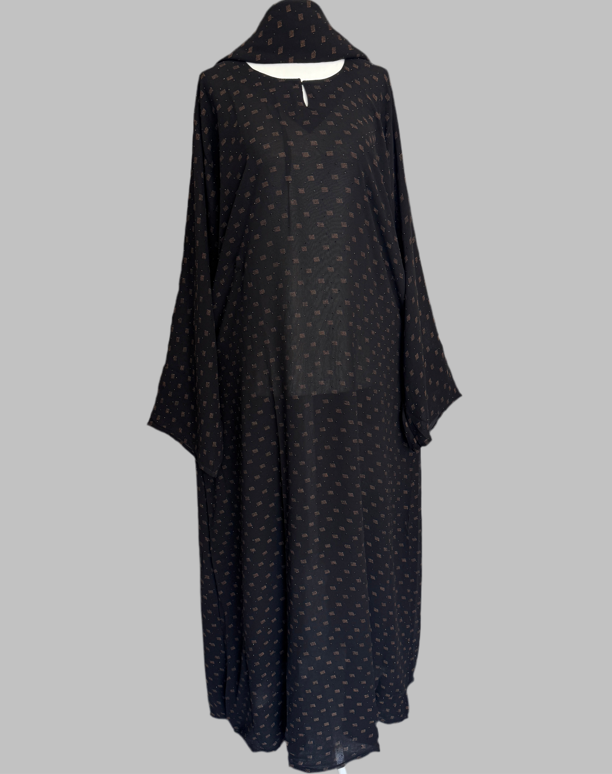 The Lunar Gold is a stunning closed chiffon abaya, featuring a unique design that will make you stand out. Crafted with quality and elegance in mind, this abaya is perfect for any occasion. Made from breathable chiffon, it offers both style and comfort. Elevate your wardrobe with this exquisite piece.