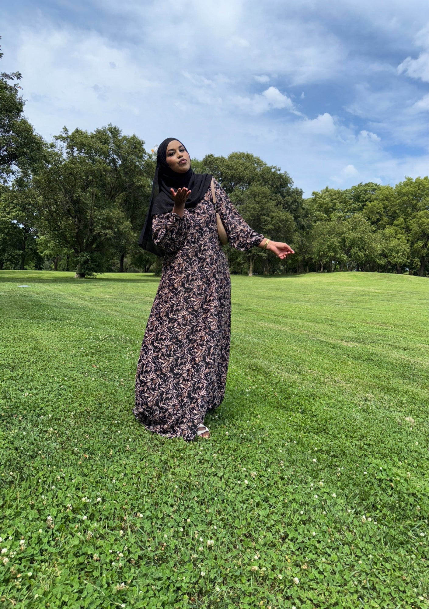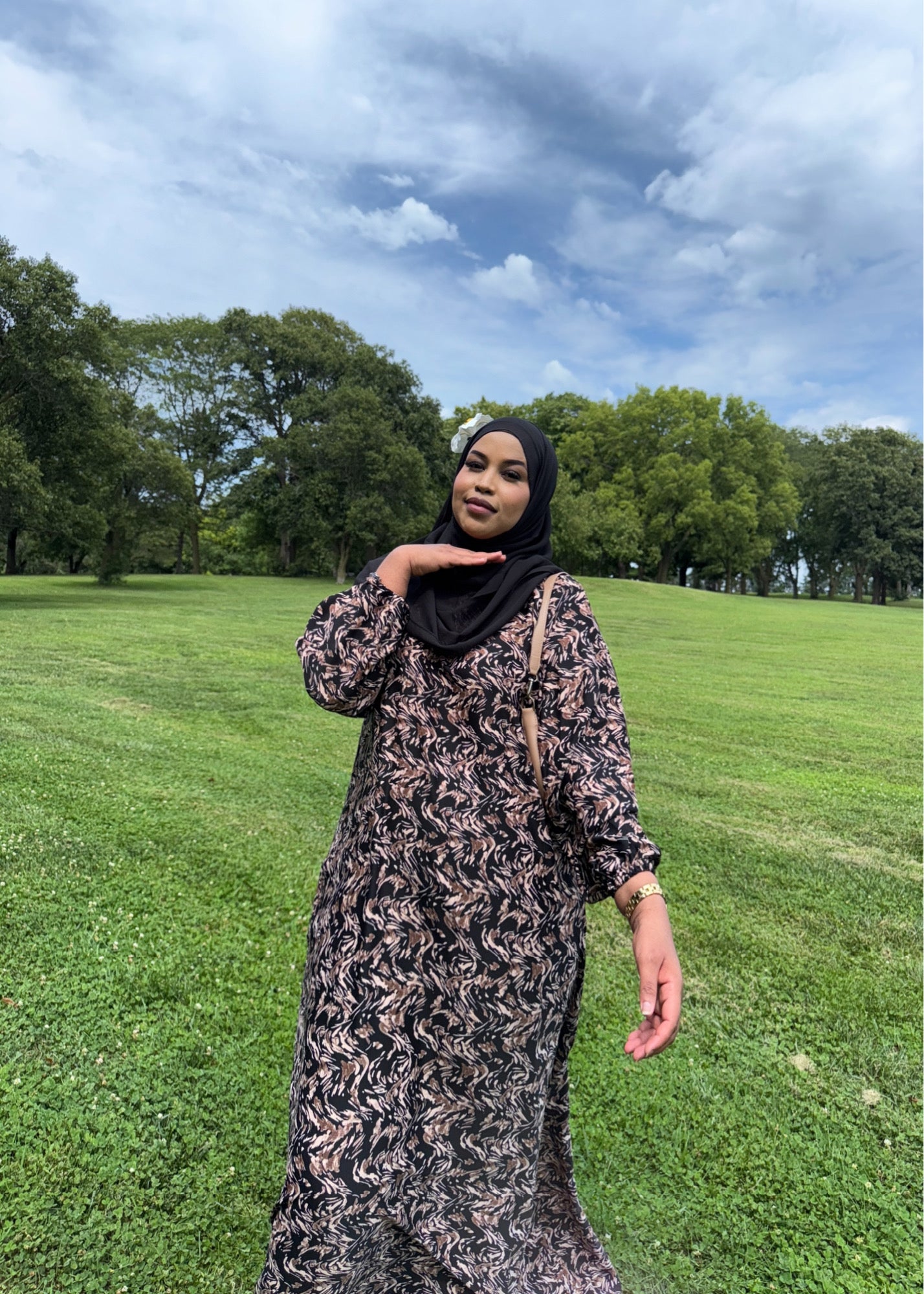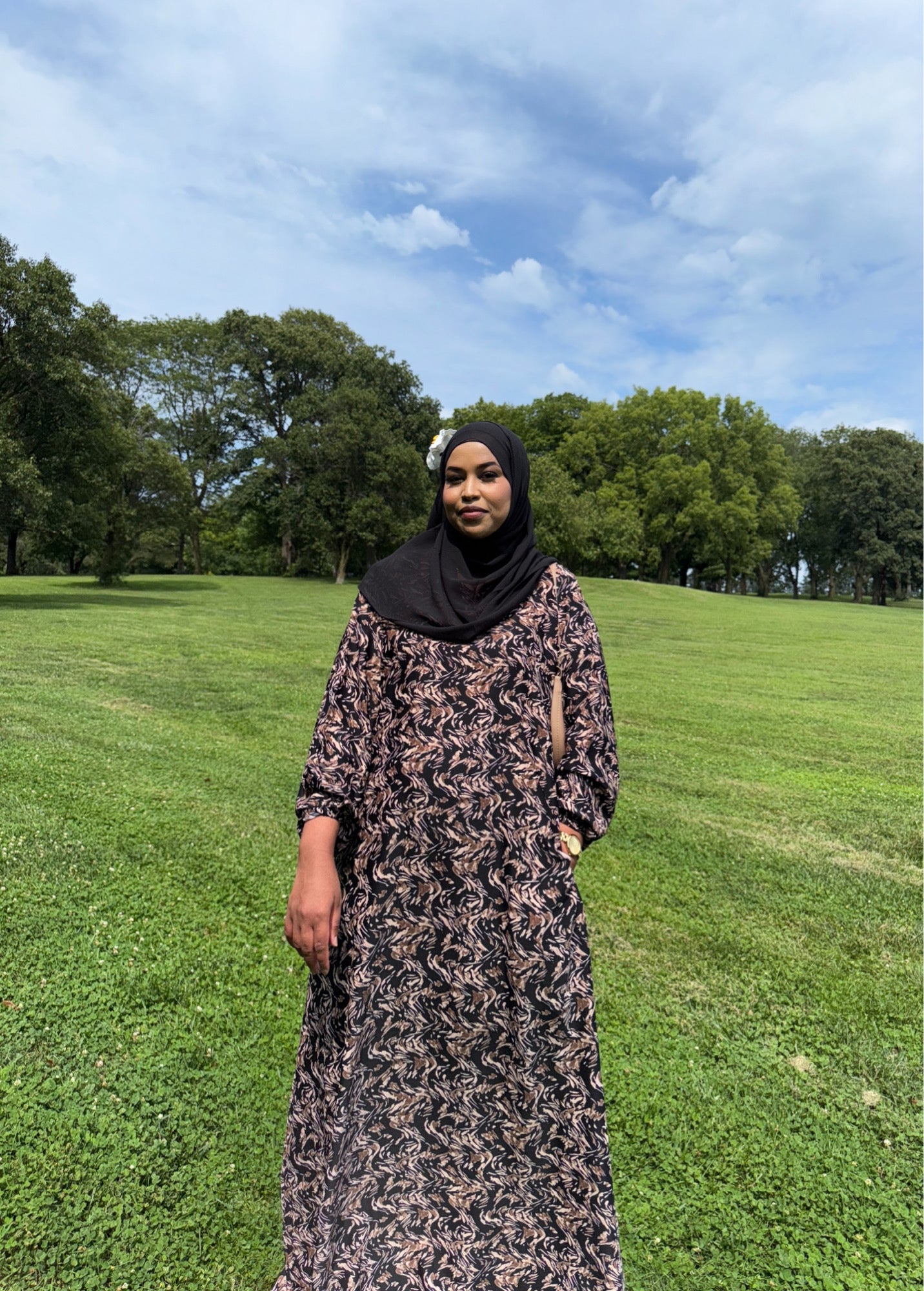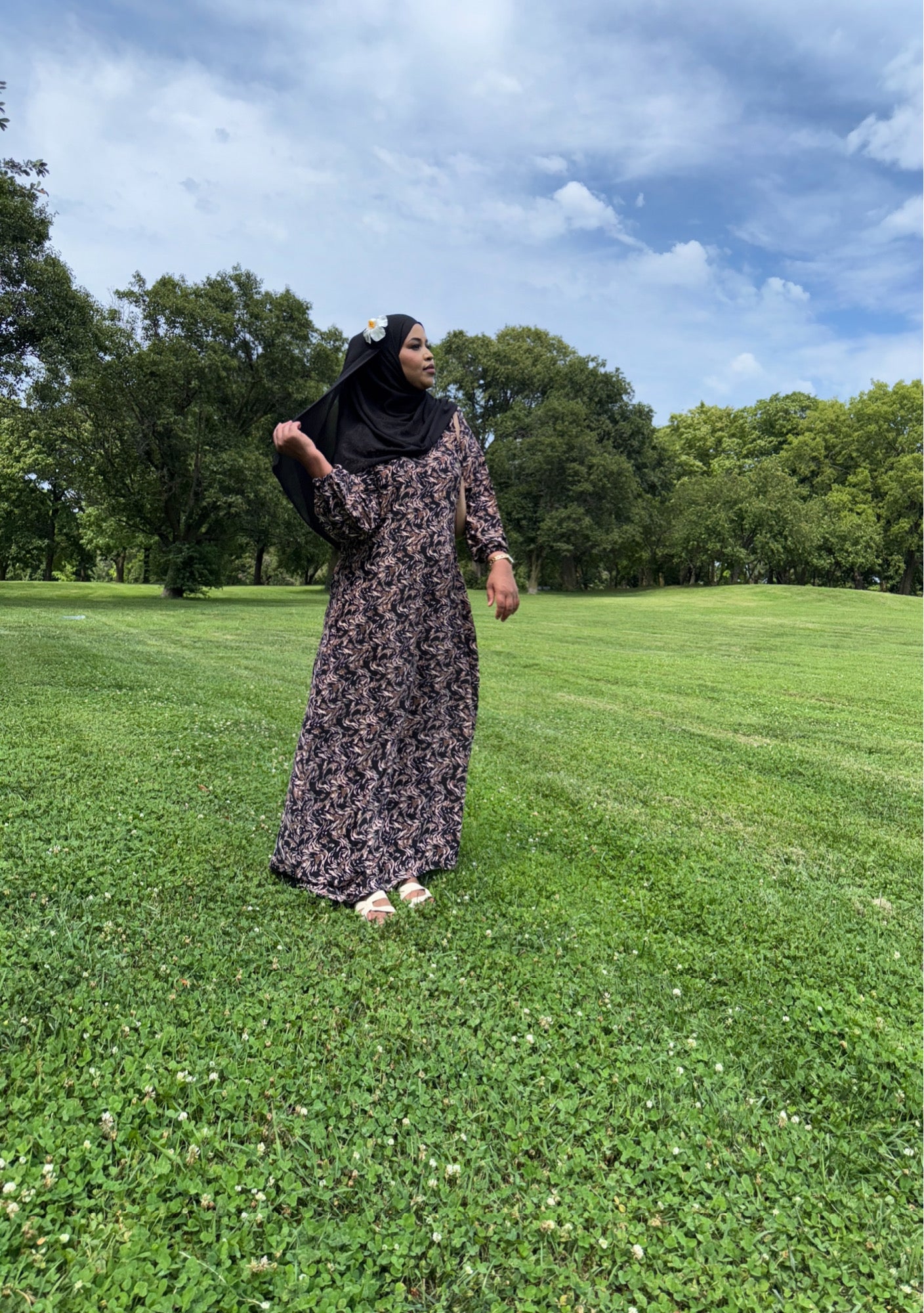 A rich blend of black and brown tones, featuring a super soft, lightweight dress with a matching hijab for a sleek, earthy elegance.